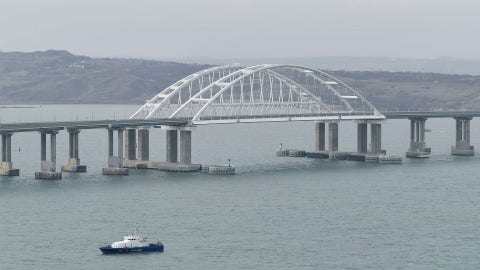 Den sprängda Krimbron tvingar ryssarna till mera extrema transportmetoder. Krimbron som mäter 19 kilometer är Europas längsta bro och är det enda sättet att ta sig från Krim till Ryssland efter att Ukraina på grund av den rådande konflikten stoppat. Delar av Krimbron har kollapsat.
